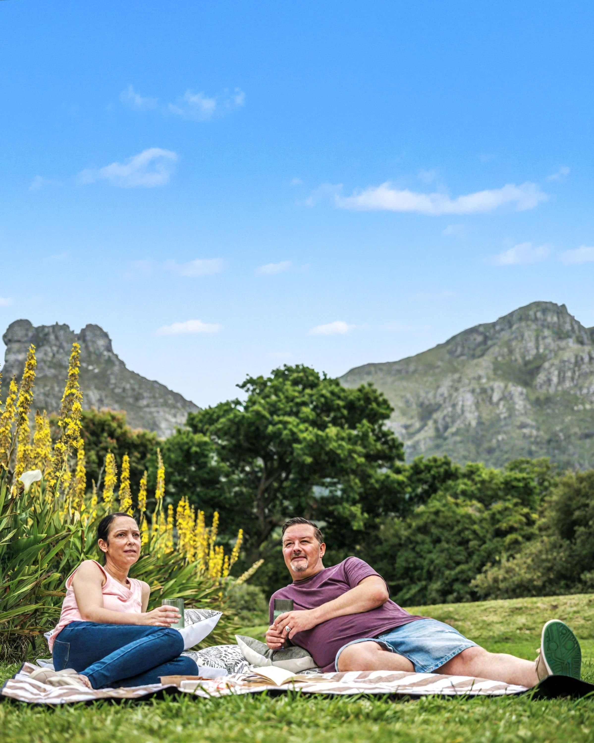 Experience the ultimate picnic at Kirstenbosch Botanical Gardens with a beautifully curated setup that includes everything you need for an unforgettable day.